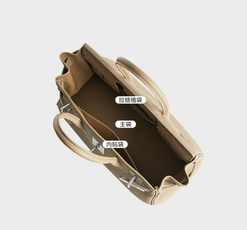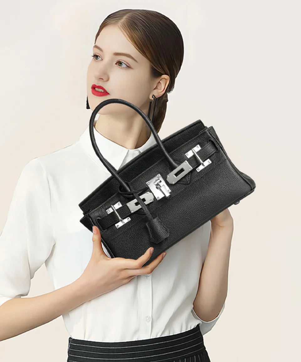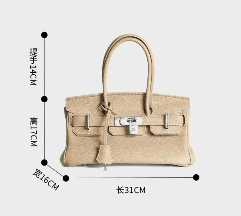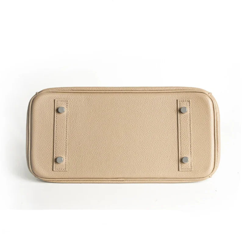 Women's Genuine Leather Fashion Handbag Top Handle Pure Color Casual Tote for Ladies Functional Commuting Shoulder Bags